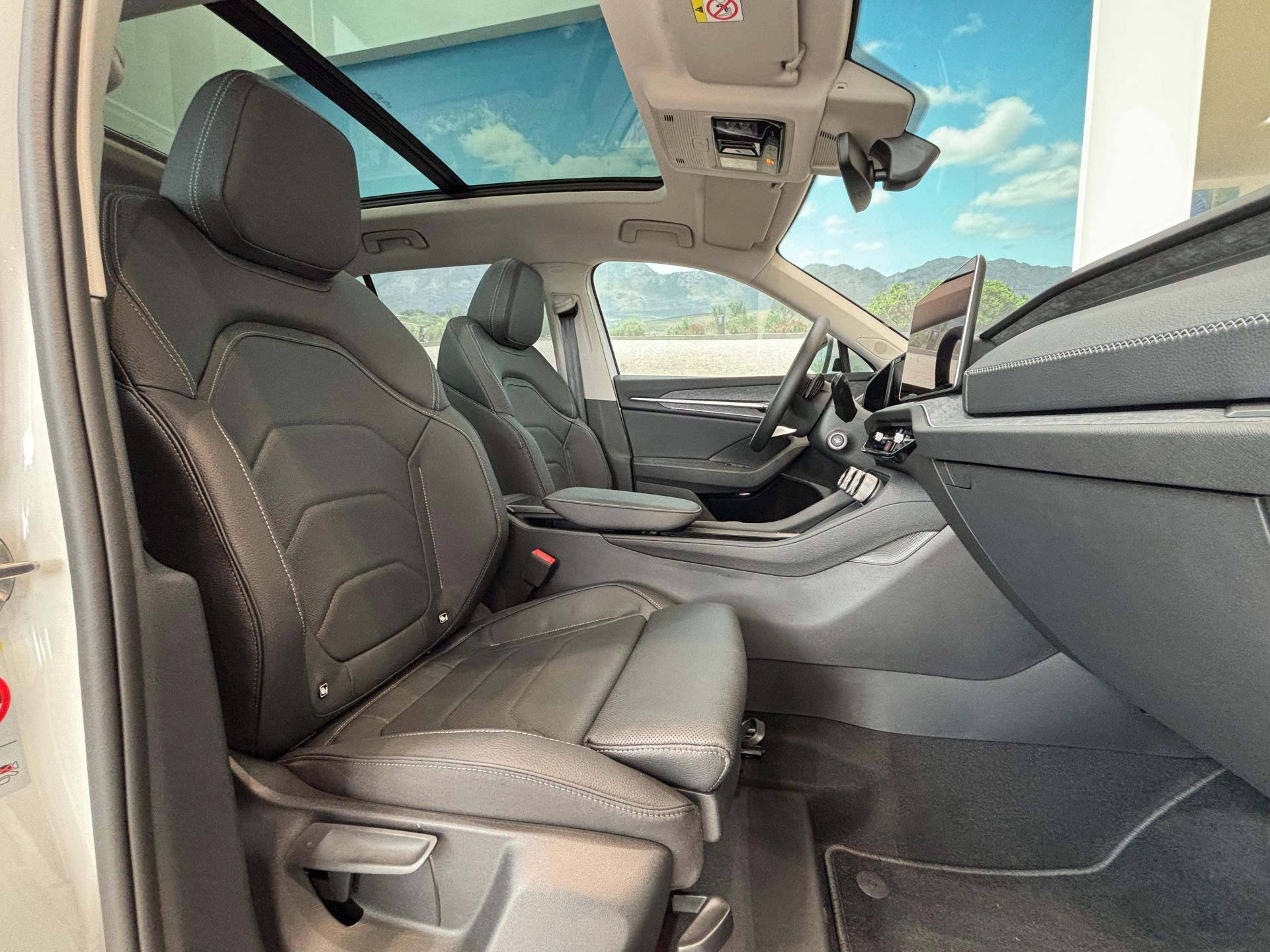 - Acabados de lujo: consola central en negro piano, puertas en cuero sintético y tablero en símil titanio