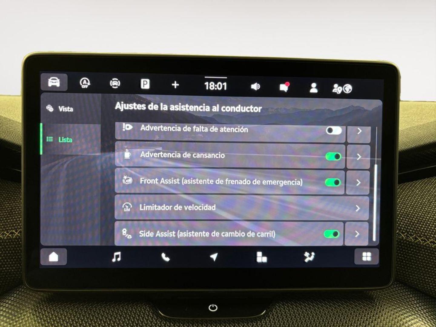 - Sistema de alarma de colisión: activa las luces de freno con asistencia de frenado, sistema antiatropello peatones/ciclistas, monitorización del conductor y delantero y trasero de 0 Km/h como mínimo aviso visual/ acústico, funciona por encima de 130 km/h / 78 mph, funciona por encima de 50 km/h / 30 mph, funciona por debajo de 50 km/h / 30 mph, incluye tráfico frontal en cruce, prevención de objetos y monitorización de patrón de conducción